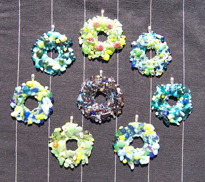 Dichroic glass necklace with fresh water coin pearls, silver and glass beads, sterling silver clasp and matching earrings. (I tend to avoid dichroic glass in earrings just because it can be so heavy, and heavy earrings tend to be earrings that don't get worn.) $165 for the set.